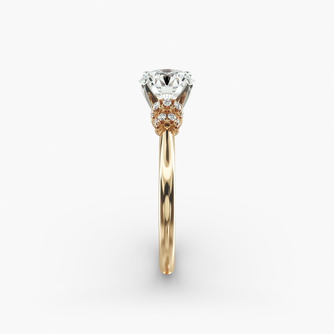 Elevate your proposal with our Fashionable Pavé Lab Grown Diamond Engagement Ring. This stunning piece features meticulously set diamonds that catch light from every angle, surrounding your center stone with brilliant sparkle. Crafted from luxurious gold for a warm, radiant glow that symbolizes your enduring love. Make her say yes with a ring as extraordinary as your journey together.