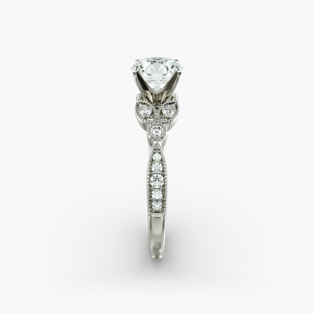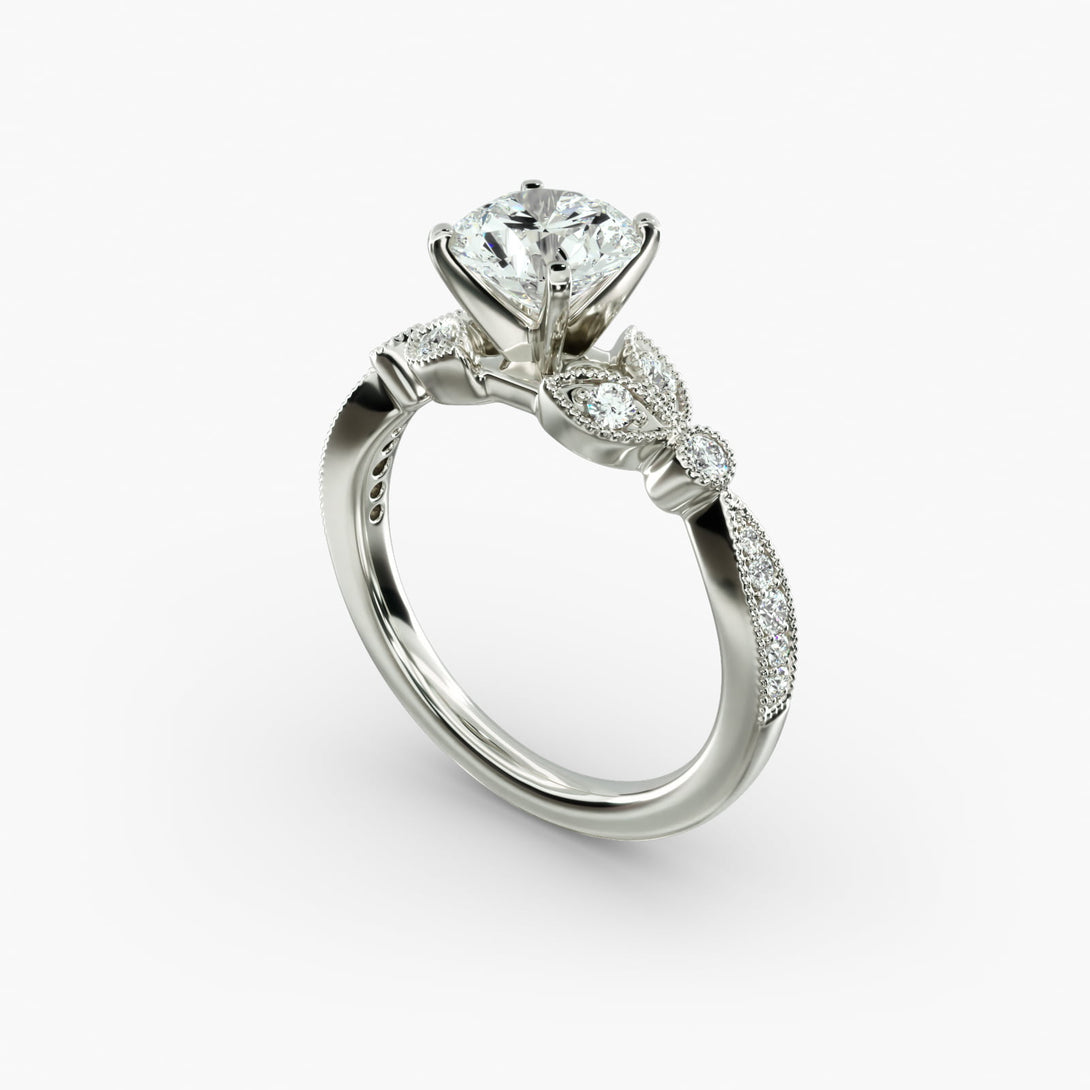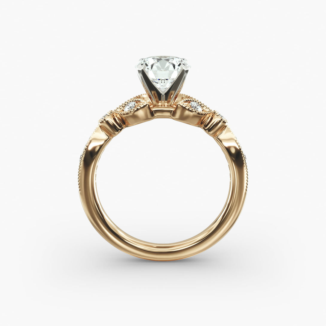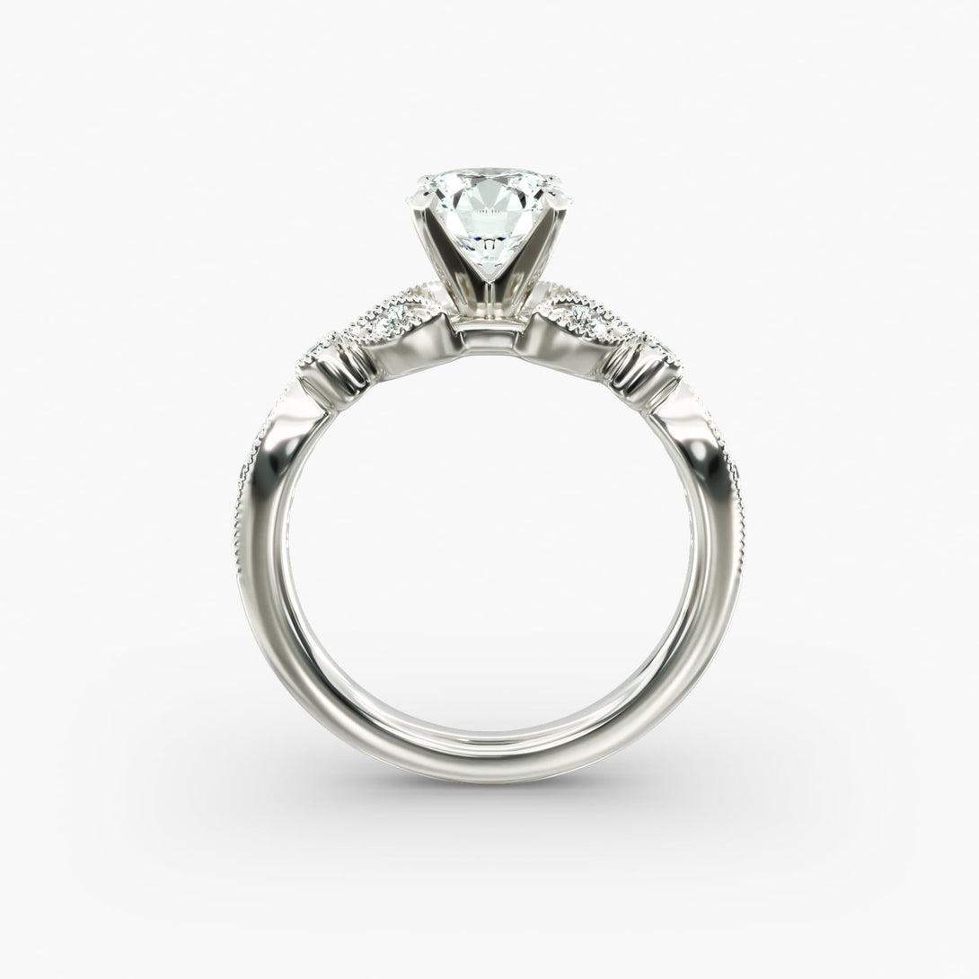 Petite Vintage Pave Leaf Lab Grown Diamond Engagement Ring