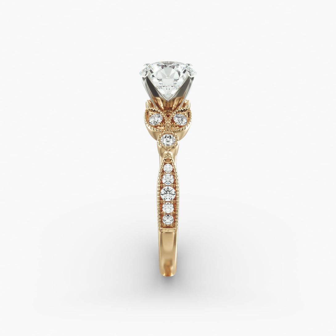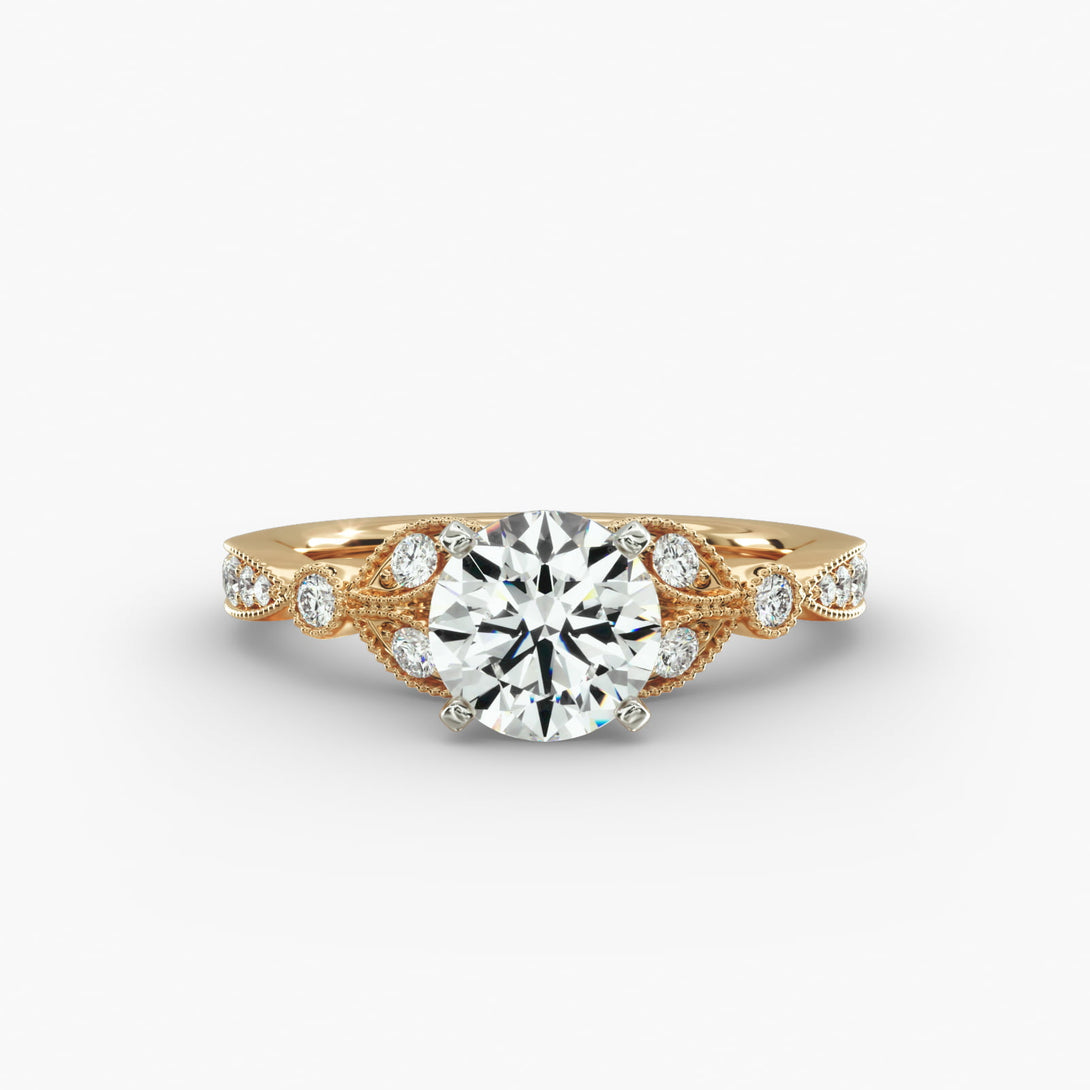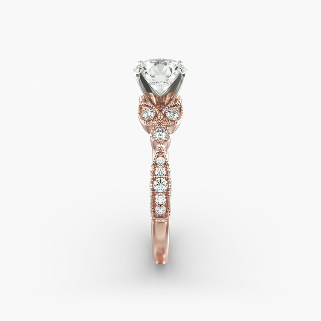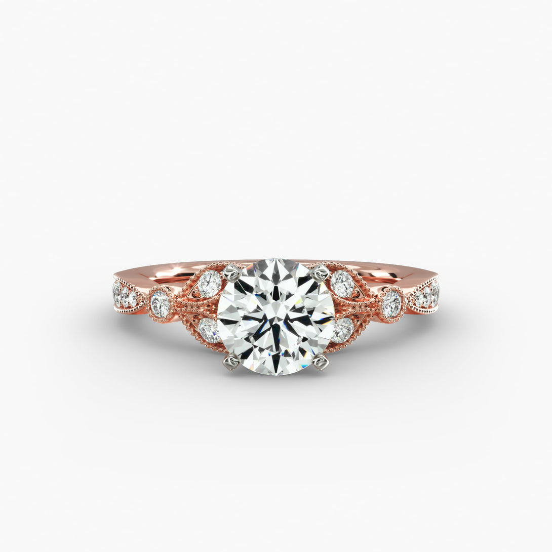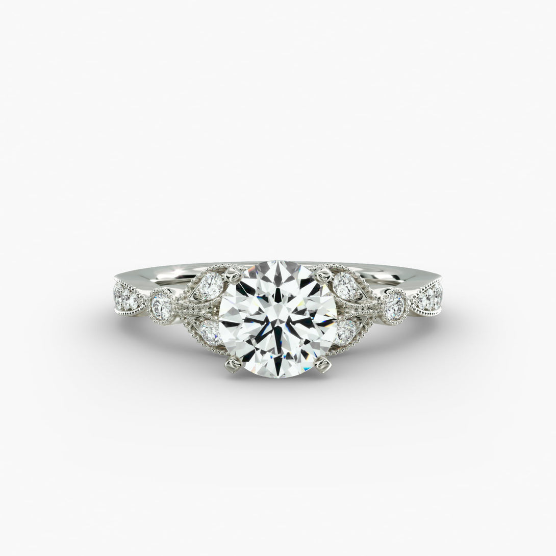 Petite Vintage Pave Leaf Lab Grown Diamond Engagement Ring