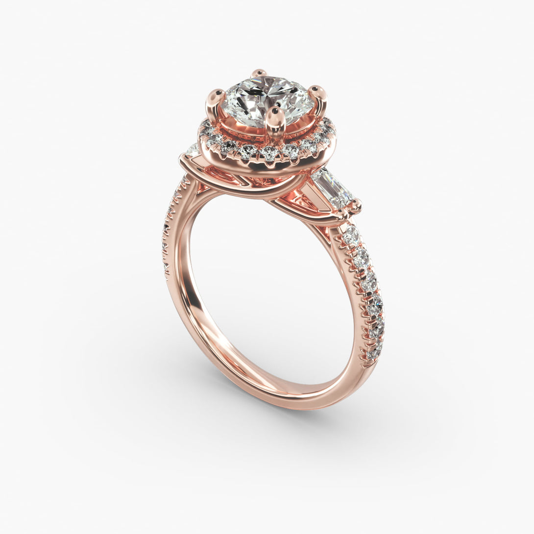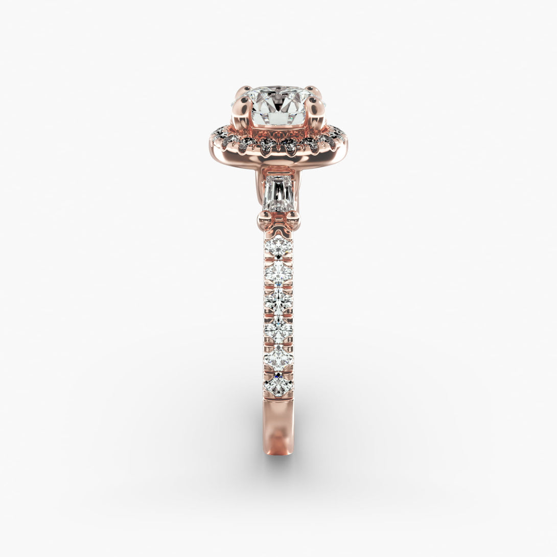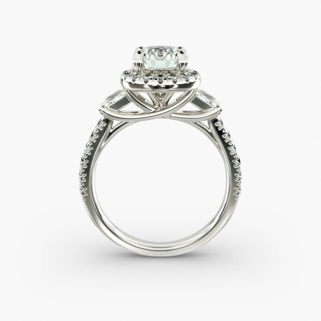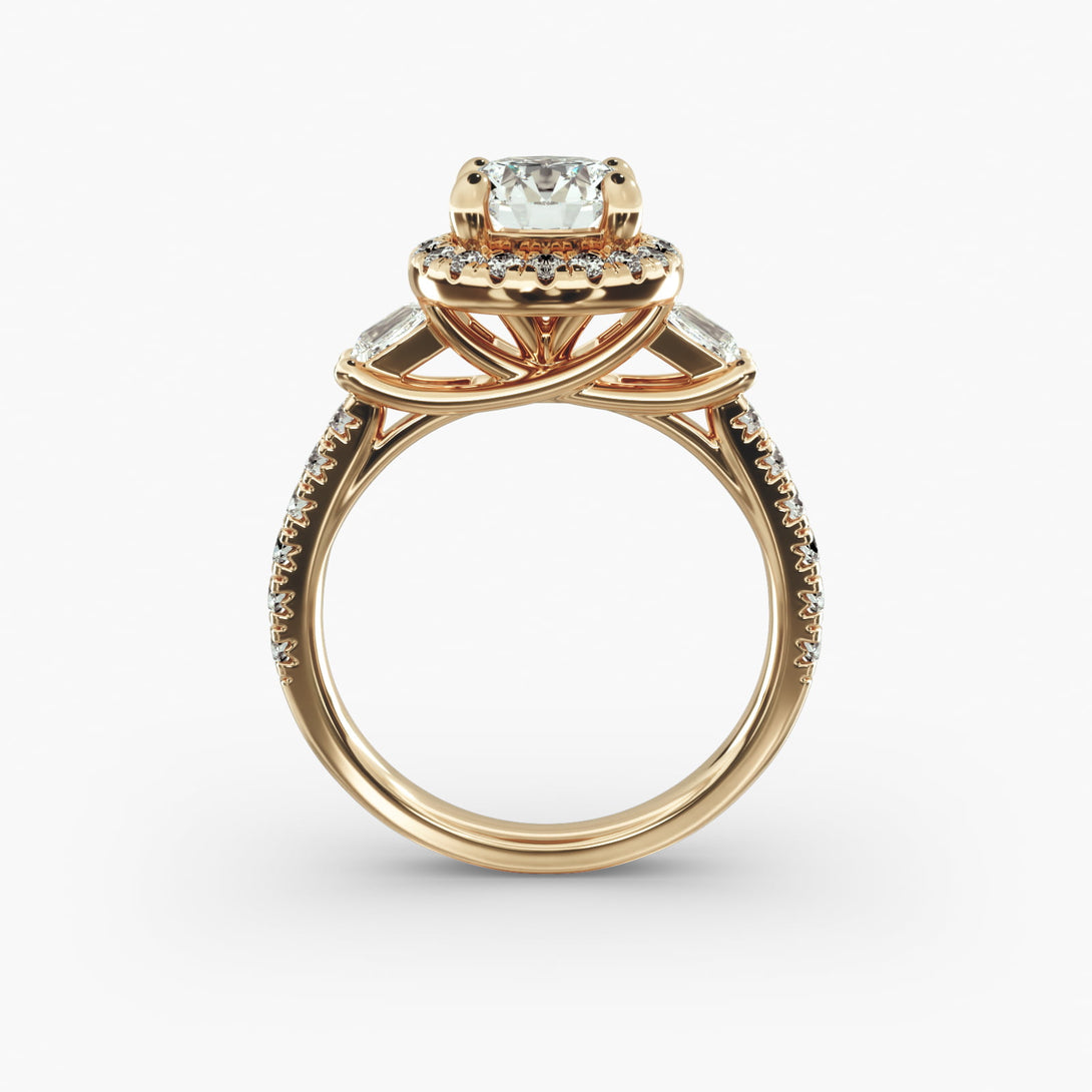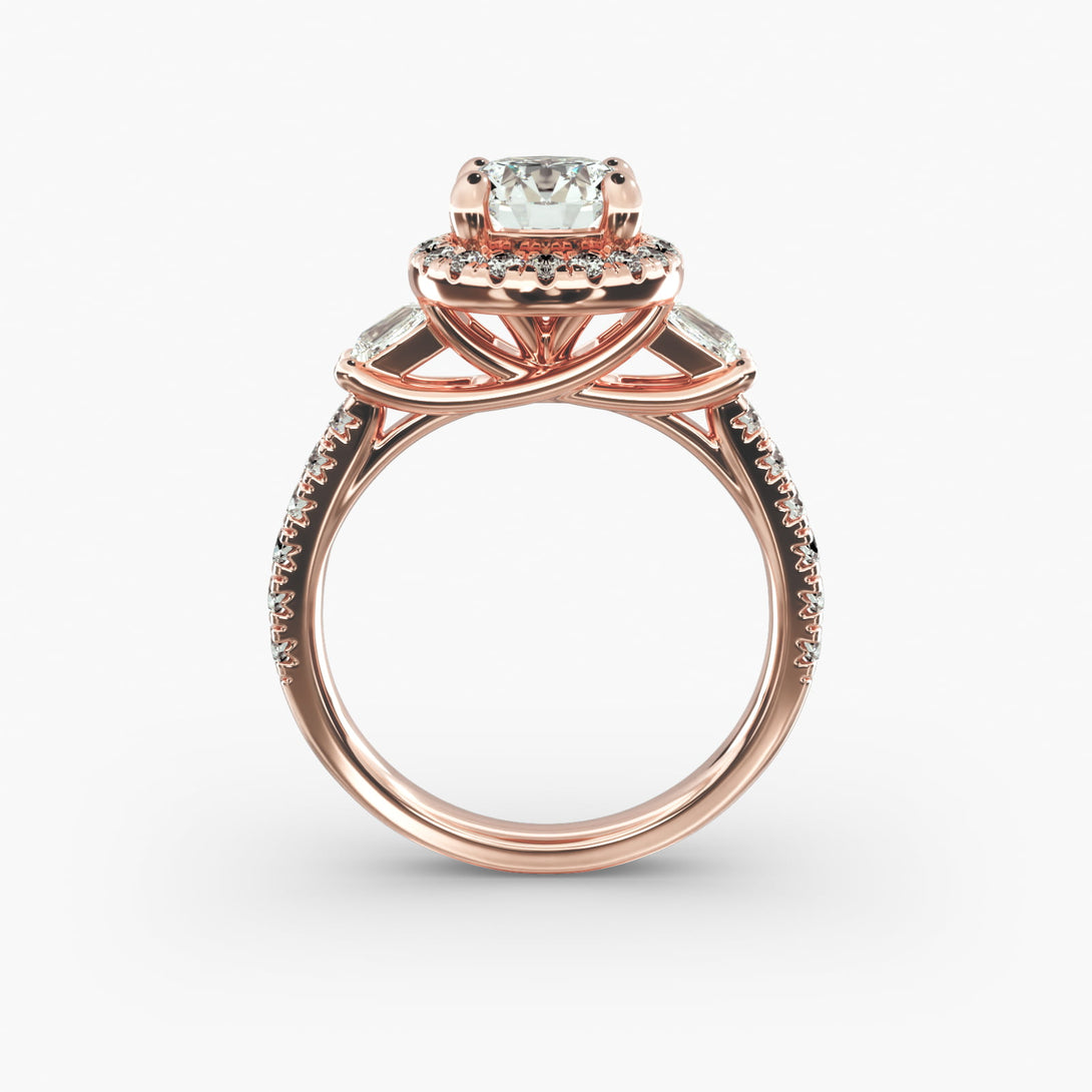 Premium Channel Set Baguette Lab Grown Diamond Halo Engagement Ring